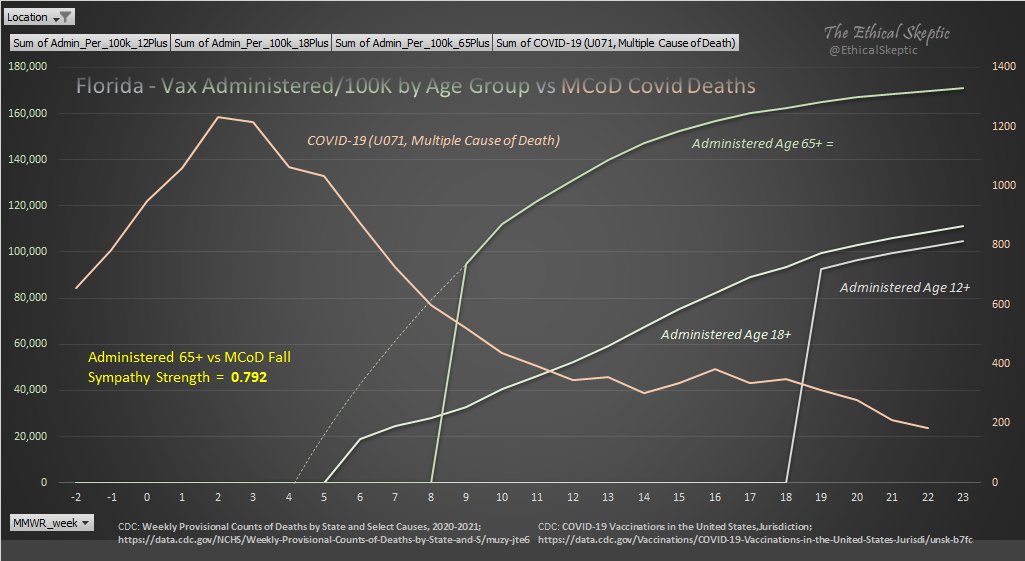 1/4 I developed sensitivity relationship charts between the fall in U071 MCoD Covid Deaths and the admin of Vaccines by each US State from Dec 12 – Jun 5