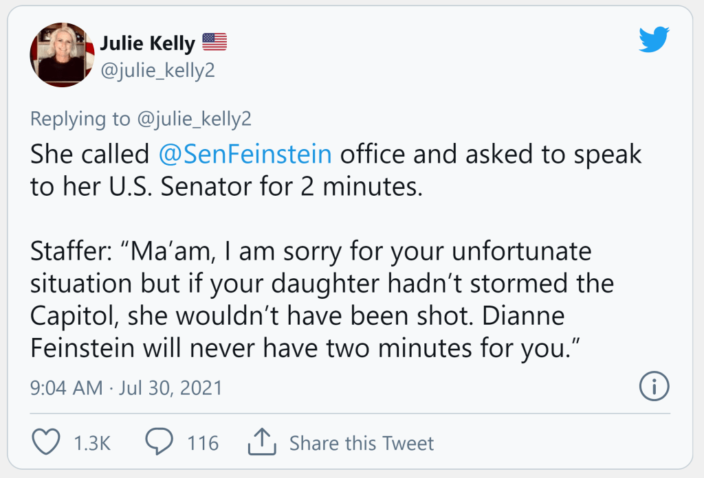 Ashley is not forgotten, … good for trying t reach Feinstein See that she, Feinstein, is unelected and charged for her crimes and convicted for 4 life sentences