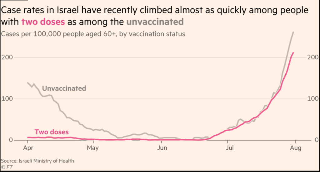 ISRAEL: Fully vaccinated showing no advantage over unvaccinated August 24, 2021August 24, 2021 ~ ABN Israel is six months ahead of USA in vax campaign. We can expect similar results here. However, since Israel keeps honest stats and we do not, we may never know. ABN Share this: Share on Reddit (Opens in new window) Reddit Share on X (Opens in new window) X Share on Facebook (Opens in new window) Facebook Share on LinkedIn (Opens in new window) LinkedIn Email a link to a friend (Opens in new window) Email Print (Opens in new window) Print Share on Pocket (Opens in new window) Pocket Like Loading... Related Published by ABN View all posts by ABN