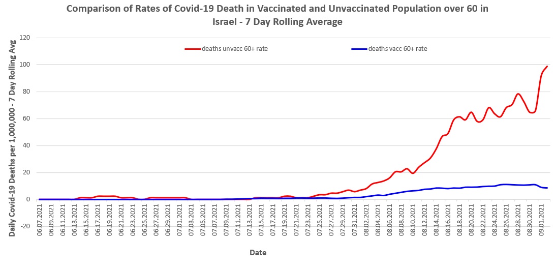 [ABN: Lacking for me in this worthy analysis is death by vaccine. This number should be added to death for vaccinated who get covid. Even in Israel we do not seem to have good figures for vaccine mortality. Steve Kirsch has put the number as high as 150K in USA. ABN]