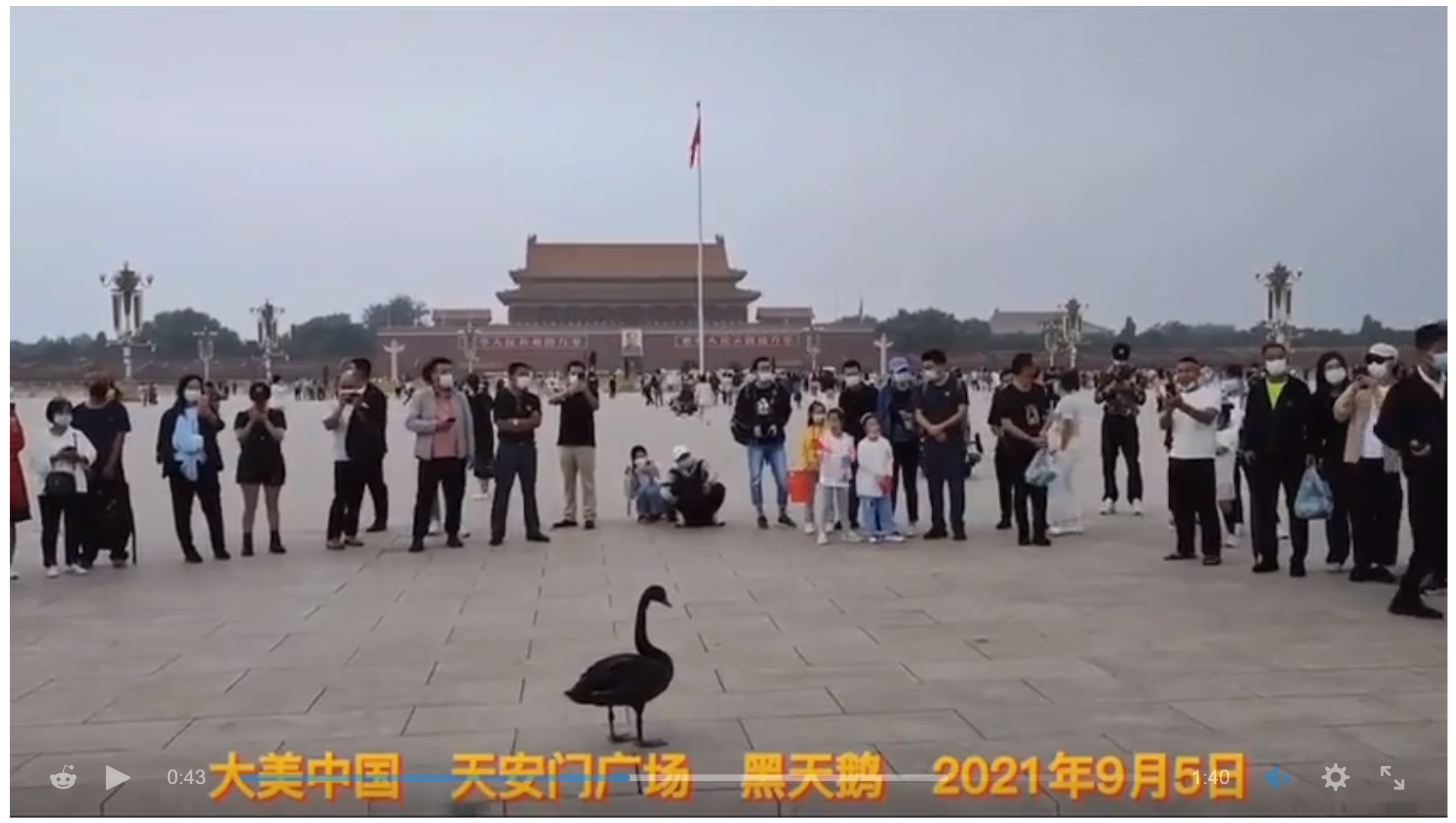 Ominous appearance of black swan on Tiananmen Square