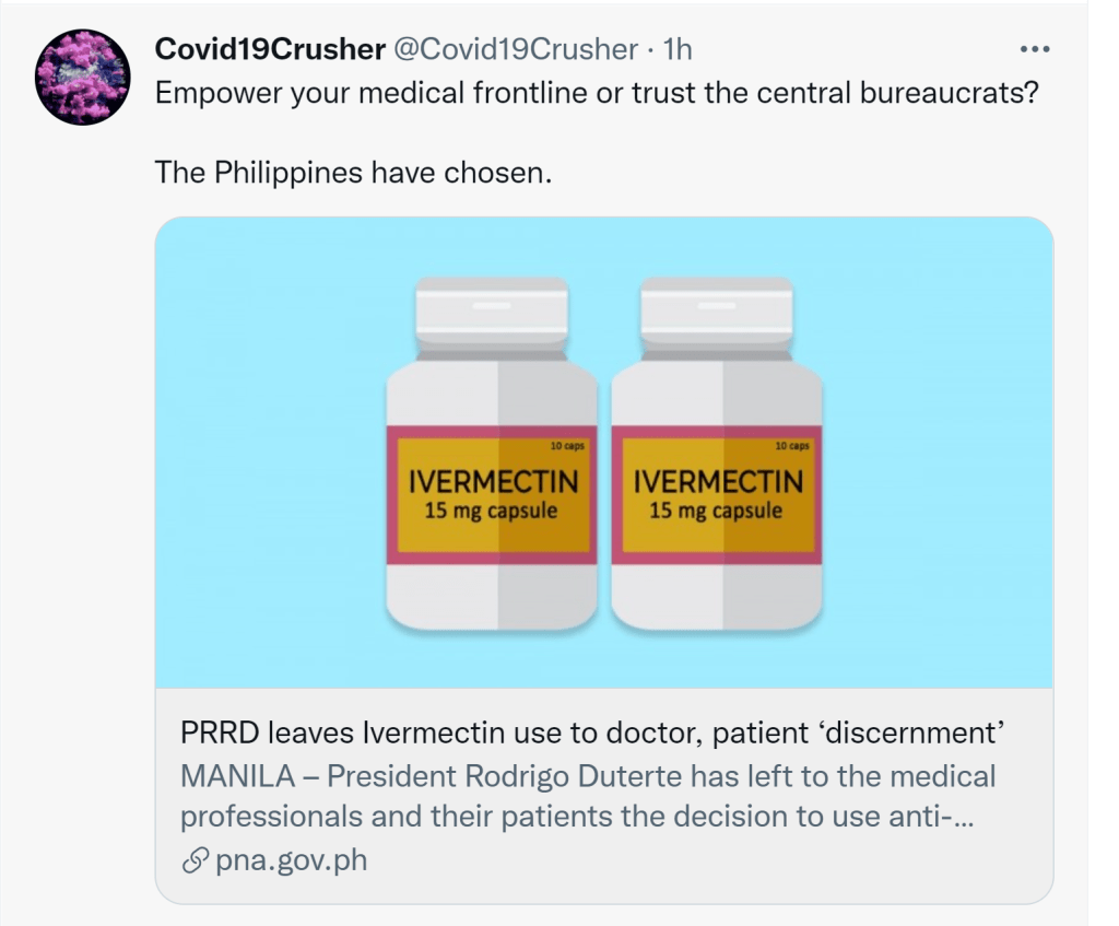PHILIPPINES: Doctor-patient “discernment” honored for IVM use. Why not in USA? You don’t want it, OK with me. I want it, OK with you?