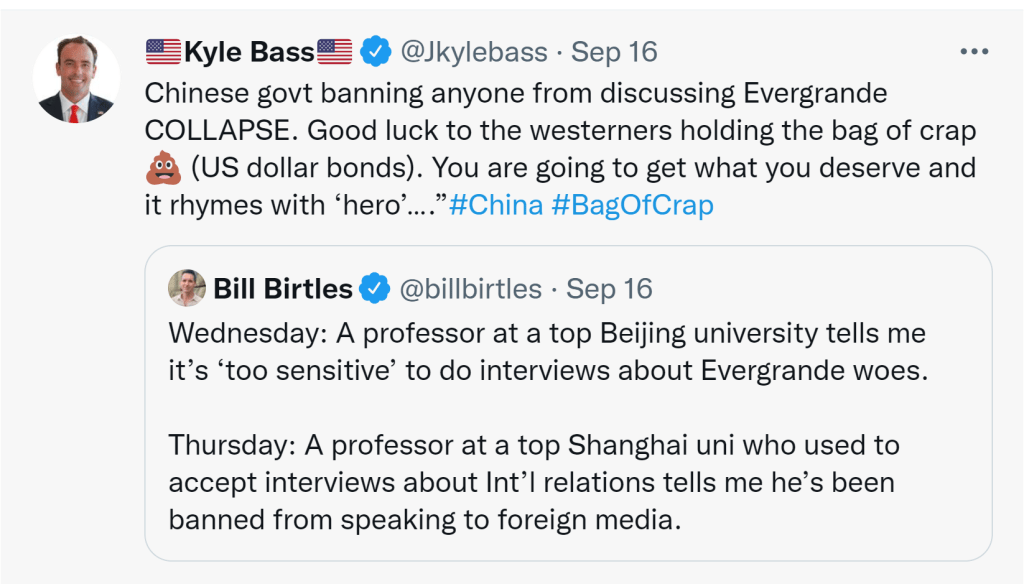Kyle Bass on Evergrande: “Good luck to the westerners holding this bag of crap”