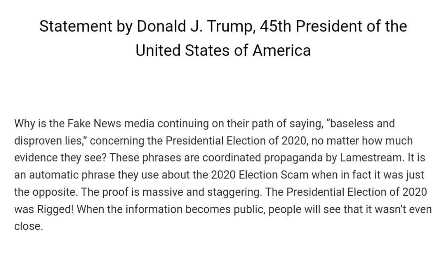 President Trump: “The Presidential Election of 2020 was Rigged! When the information becomes public, people will see that it wasn’t even close”
