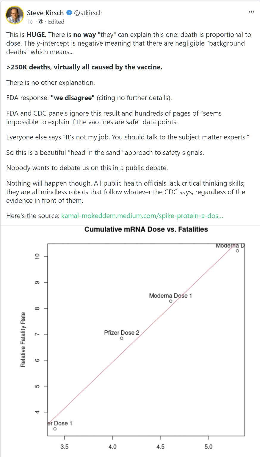 250K deaths virtually all caused by vax October 5, 2021October 5, 2021 ~ ABN direct link to Gab Link to the paper cited above: Spike Protein, a Dose Dependent Killer? ABN Share this: Share on Reddit (Opens in new window) Reddit Share on X (Opens in new window) X Share on Facebook (Opens in new window) Facebook Share on LinkedIn (Opens in new window) LinkedIn Email a link to a friend (Opens in new window) Email Print (Opens in new window) Print Share on Pocket (Opens in new window) Pocket Like Loading... Related Published by ABN View all posts by ABN