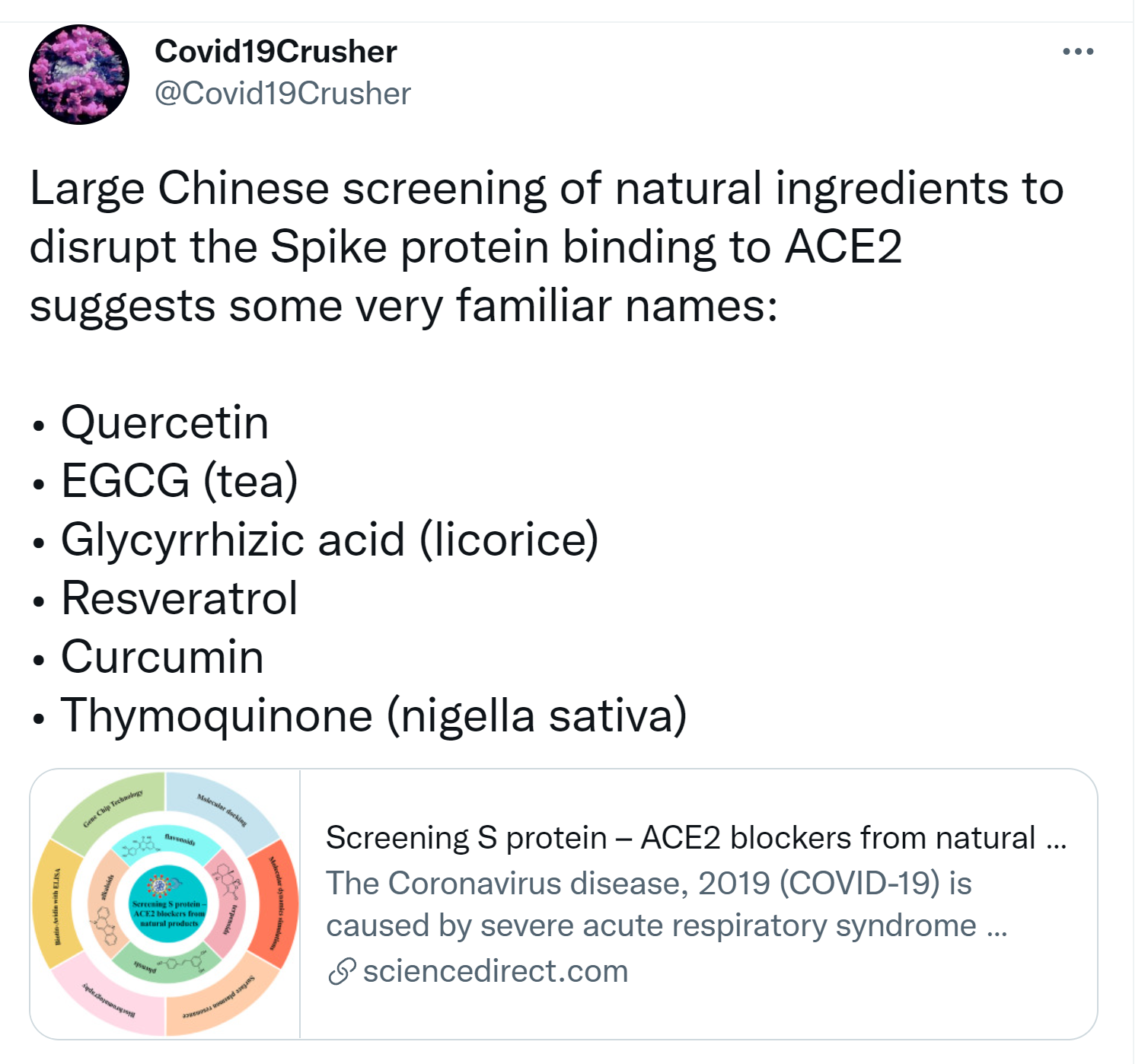 Natural disrupters of covid spike binding to ACE2