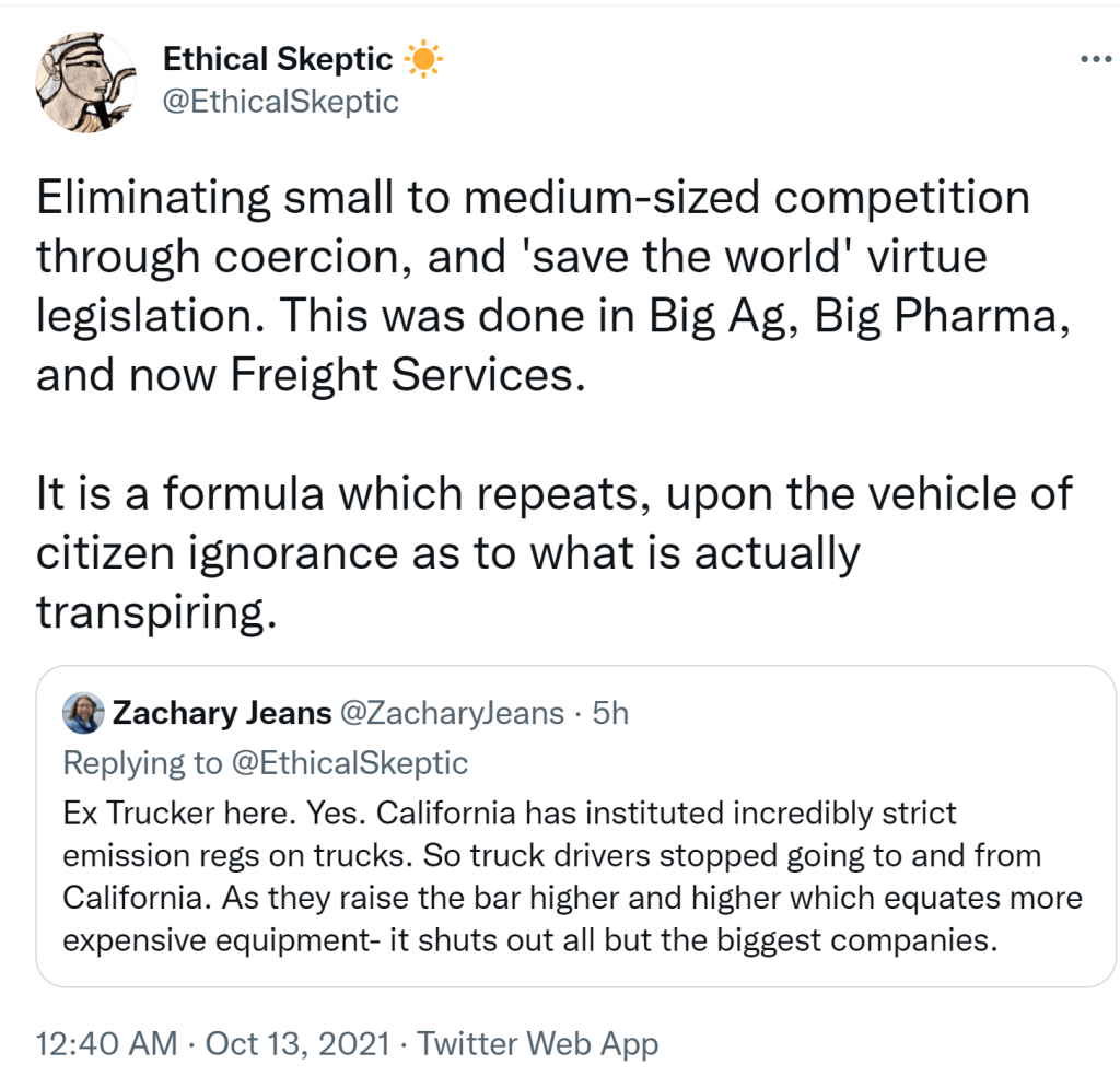 This is accomplished through Big Dollar “regulatory capture” as well as citizen ignorance. We can see similar in many other institutions and businesses: MSM, Big Tech, academia, hospitals, medical conglomerates, ruined mom-and-pop stores, and so on. In this vein, “ideological capture” through misplaced virtue has all but destroyed individual rights in favor of vague collective rights, “woke rights.” Vax mandates are an outcome of top-down “virtues,” which result in increasingly destructive authoritarianism. The situation is so bad, USA is fast becoming a collective wasteland in a globopinko globalist world. ABN