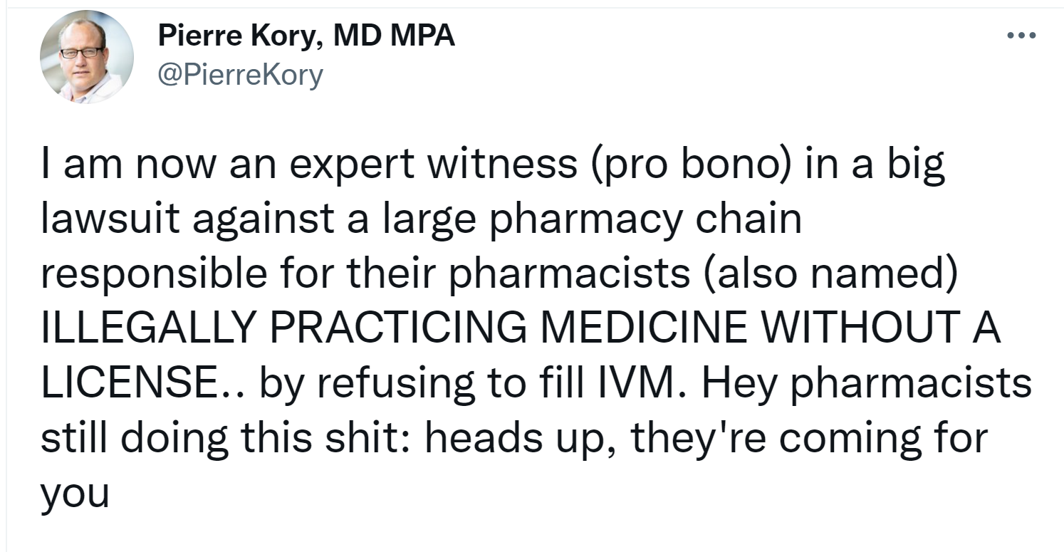 I dealt with three pharmacists who refused to fill covid prescriptions from MDs. It’s an unpleasant experience because it’s irrational and illegal but they try to justify it anyway. One was very polite and said she agreed with me but nothing she could do because her governing board had ruled “from the top.” A second one said similar and was also polite but as I spoke with him it became apparent he knew almost nothing about covid or available therapeutics. The third was a little bitch dictator who delighted in being snide as well as stupid. I can understand the positions pharmacists, nurses, and doctors have been put in. But can’t you guys get together more, exert more pressure on the people controlling you? I hope this pandemic has taught medical (and all other) workers that a robust and active grapevine can serve as a strong counterweight to unreasonable demands from the top. ABN