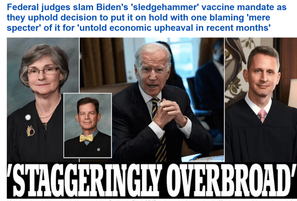 Federal court UPHOLDS decision to halt Biden’s federal vaccine mandate after blasting edict as ‘staggeringly overbroad’