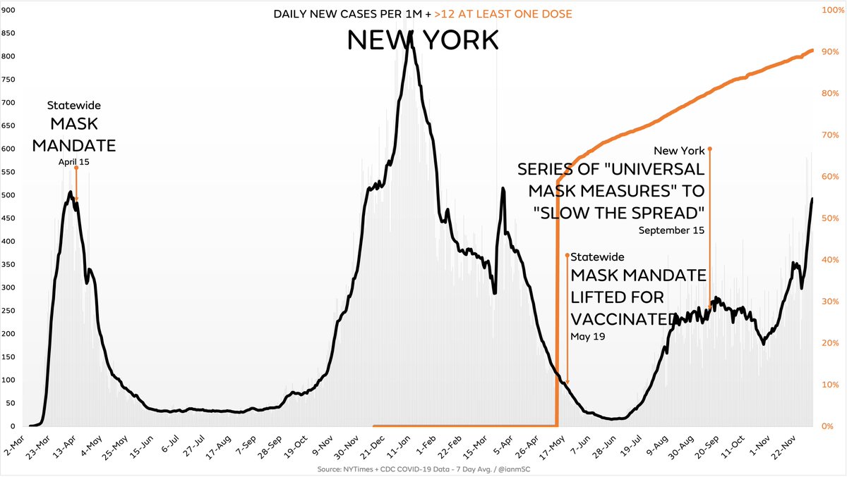 Cases in New York have nearly doubled since they imposed a “series of universal mask measures” to “slow the spread,” even with 90.4% of everyone over 12 at least partially vaccinated, so get ready for this to be totally ignored by the media cause they can’t blame Florida