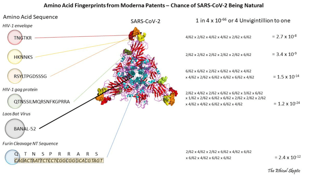 And also, SARS-CoV-2 contains patented Moderna amino acid sequences, which means they had to have known the virus did not arise in nature and jump to humans. But why did they try to quash that idea with threats and bribes and name-calling anyone who raised it a “conspiracy theorist”? Why indeed is so much being hidden while at the same time we are being forced to have so much faith in our government? ABN