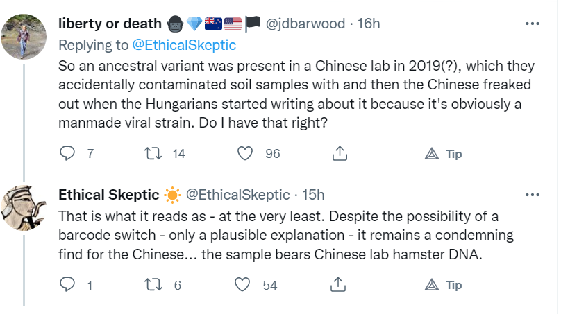 This find strengthens the notion that China was directly responsible for release of the Wuhan (alpha) strain of covid. This release could have been advertent or inadvertent and a lot rides on that. If inadvertent, China still bears responsibility for starting the pandemic and then not warning the world but instead hiding their role in its origin. If the release was deliberate, it was a massive act of war. That said, I wonder if it will ever be possible to pin a deliberate release on anyone. Just as China could have done it so another actor could have figured out how to make it look like China did it.