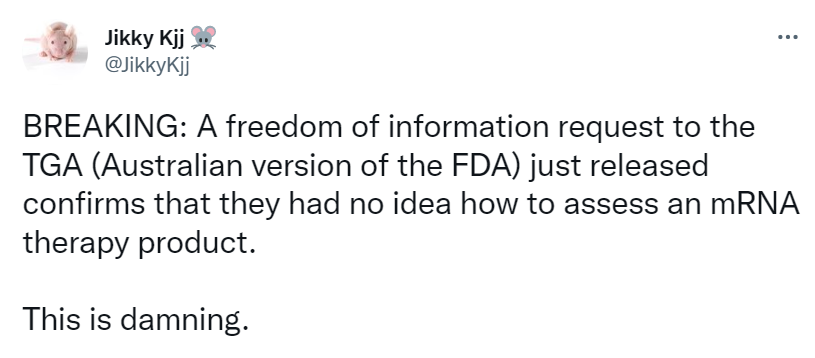 AUSTRALIAN TGA: “The documents you requested do not exist” February 20, 2022February 20, 2022 ~ ABN Share this: Share on Reddit (Opens in new window) Reddit Share on X (Opens in new window) X Share on Facebook (Opens in new window) Facebook Share on LinkedIn (Opens in new window) LinkedIn Email a link to a friend (Opens in new window) Email Print (Opens in new window) Print Like Loading... Related Published by ABN View all posts by ABN