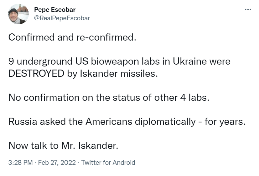 Nine underground US bioweapon labs in Ukraine were destroyed by Iskander missiles