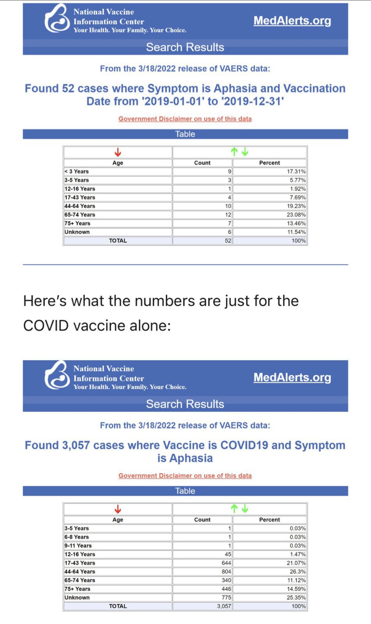 Aphasia case comparison March 31, 2022 ~ ABN Don’t forget VAERS figures are much lower than actual real-world cases. Another point is increased acute harm so soon after vaccine rollout presages increased chronic harm over a much longer time period. ABN Share this: Share on Reddit (Opens in new window) Reddit Share on X (Opens in new window) X Share on Facebook (Opens in new window) Facebook Share on LinkedIn (Opens in new window) LinkedIn Email a link to a friend (Opens in new window) Email Print (Opens in new window) Print Share on Pocket (Opens in new window) Pocket Like Loading... Related Published by ABN View all posts by ABN