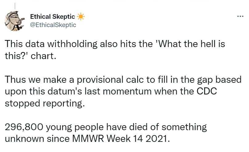 Withholding scientific data is criminal fraud. Our health agencies went crazy from covid and now want to hide what really happened. Week 14 of 2021 closely follows the launch of mass vaccinations. ABN