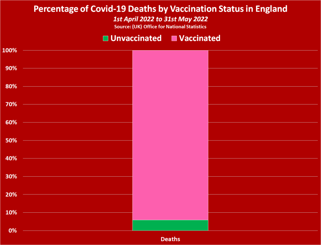 With the most recent figures showing the vaccinated population in England accounted for a shocking 94% of all Covid-19 Deaths in April and May, and 90% of those deaths were among the triple/quadruple vaccinated population.