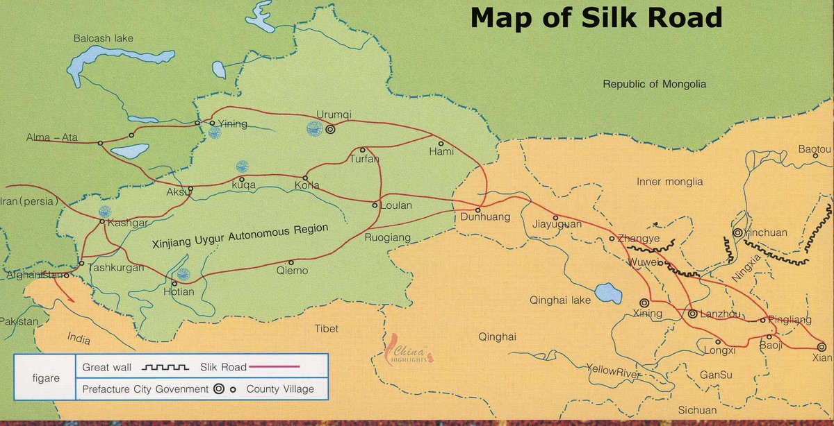 Despite an enormous land border, China is only truly connected to the rest of Eurasia by a series of thin threads: the Hexi Corridor & a series of oasis cities scattered across the Tarim Basin