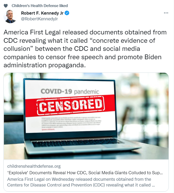 Link to article: ‘Explosive’ Documents Reveal How CDC, Social Media Giants Colluded to Suppress Free Speech