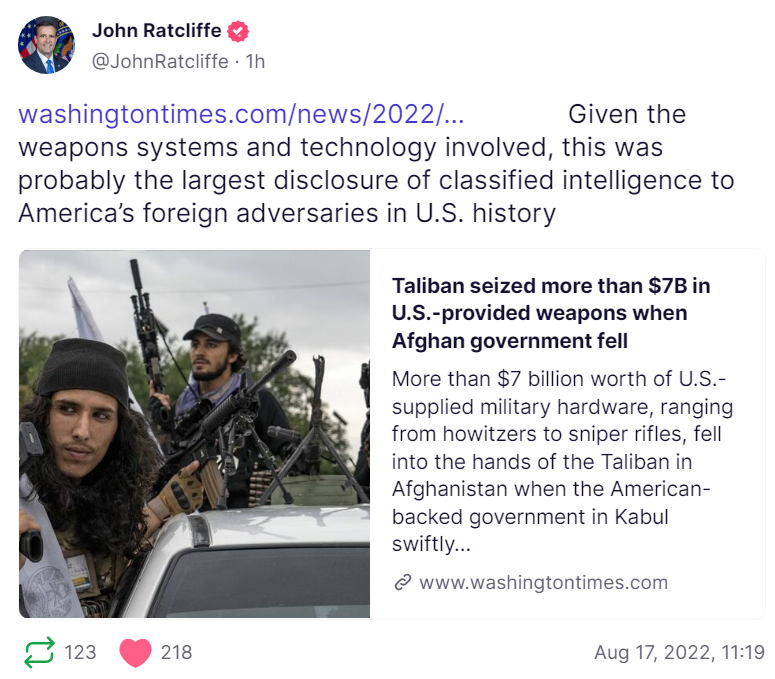 “Probably the largest disclosure of classified intelligence to America’s foreign adversaries in U.S. history” ~ John Ratcliffe