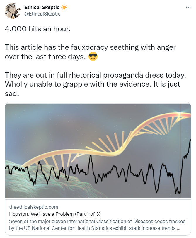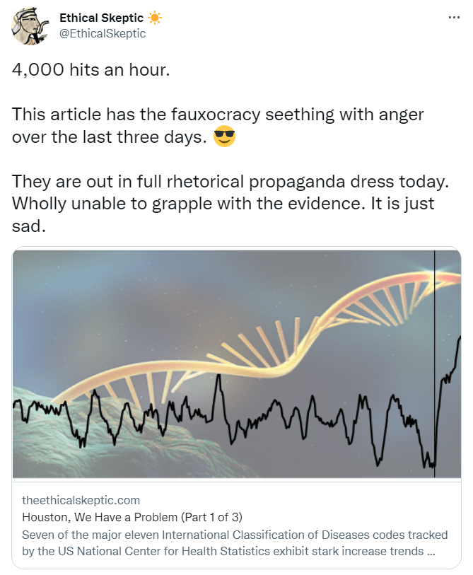 More evidence covid pseudoscience is being widely understood August 23, 2022 ~ ABN Here is the article: Houston, We Have a Problem (Part 1 of 3). ABN Share this: Share on Reddit (Opens in new window) Reddit Share on X (Opens in new window) X Share on Facebook (Opens in new window) Facebook Share on LinkedIn (Opens in new window) LinkedIn Email a link to a friend (Opens in new window) Email Print (Opens in new window) Print Share on Pocket (Opens in new window) Pocket Like Loading... Related Published by ABN View all posts by ABN