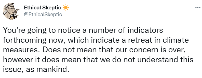 You’re going to notice a number of indicators forthcoming now, which indicate a retreat in climate measures