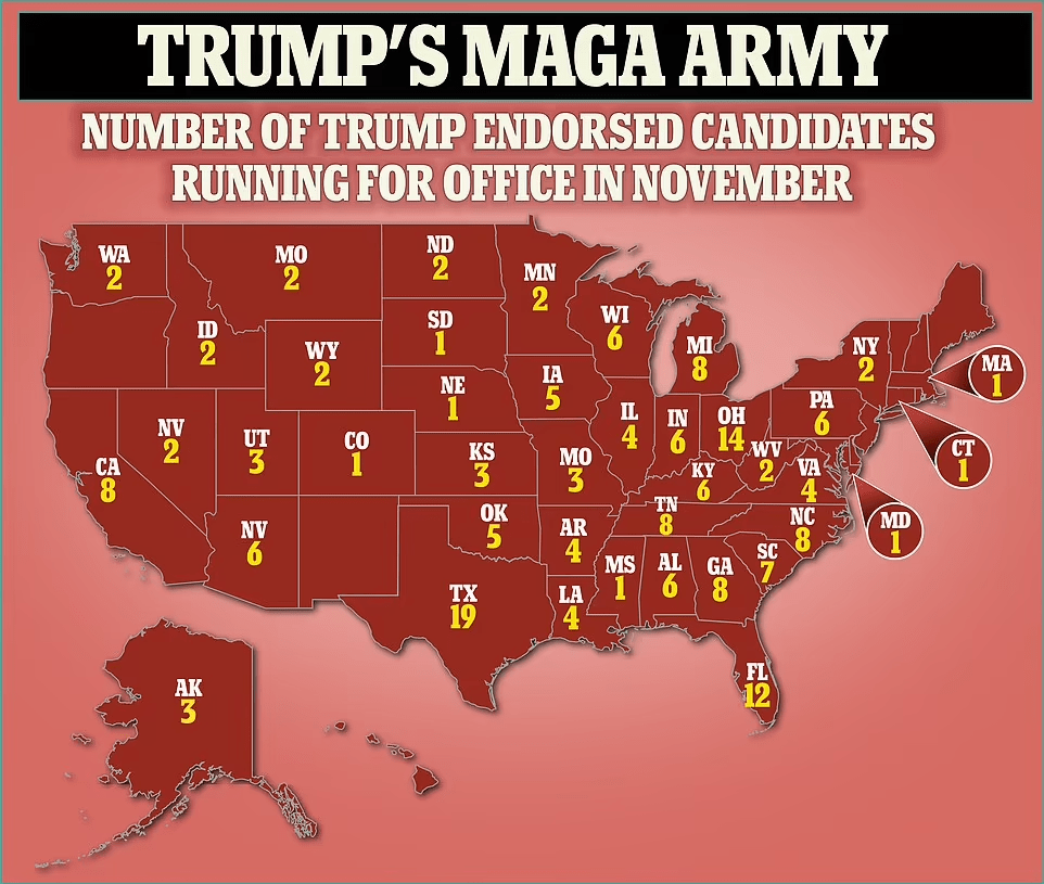An army of more than 200 MAGA candidates ready to fight for Donald Trump‘s agenda is marching into November’s midterm races, after a heated primary season that proved the ex-president remains, for the most part, the de facto leader of the Republican Party.