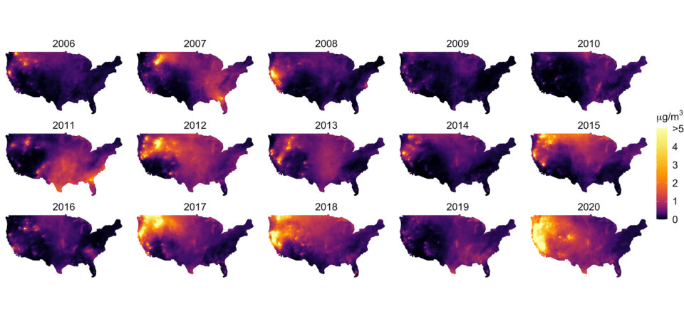 Using statistical modeling and artificial intelligence techniques, the researchers estimated concentrations of PM2.5 specifically from wildfire smoke in sharp enough detail to reveal variations within individual counties and individual smoke events from coast to coast from 2006 to 2020.