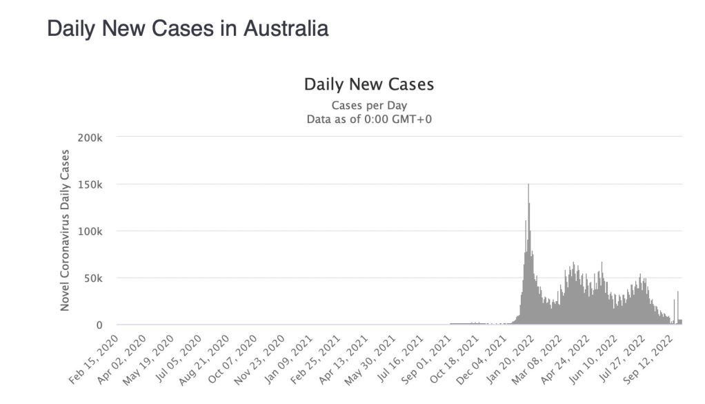 In this graph, we can also see the massive fail of vaccine mandates as cases soar in tandem with them. The WHO is not to blame for this. Australian officials and to a lesser extent the Australian people are. ABN