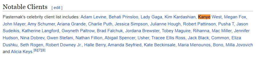 Someone recently removed from Harley Pasternak’s Wikipedia entry two main things:
