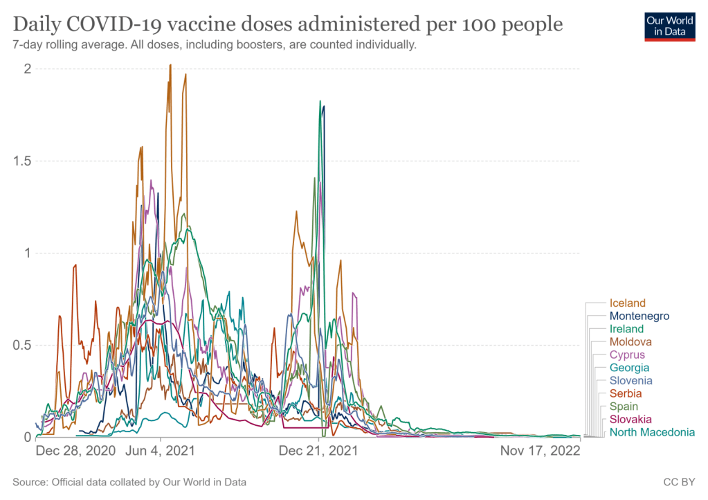 In numerous countries, despite vaccination remaining available, people are no longer cooperating with the programme. There has been no official end to the programme but people have opted out. The government has not told them to stop, the media have not told them to stop. Somehow, people have made a conscious or, perhaps for many a subconscious decision to decline.