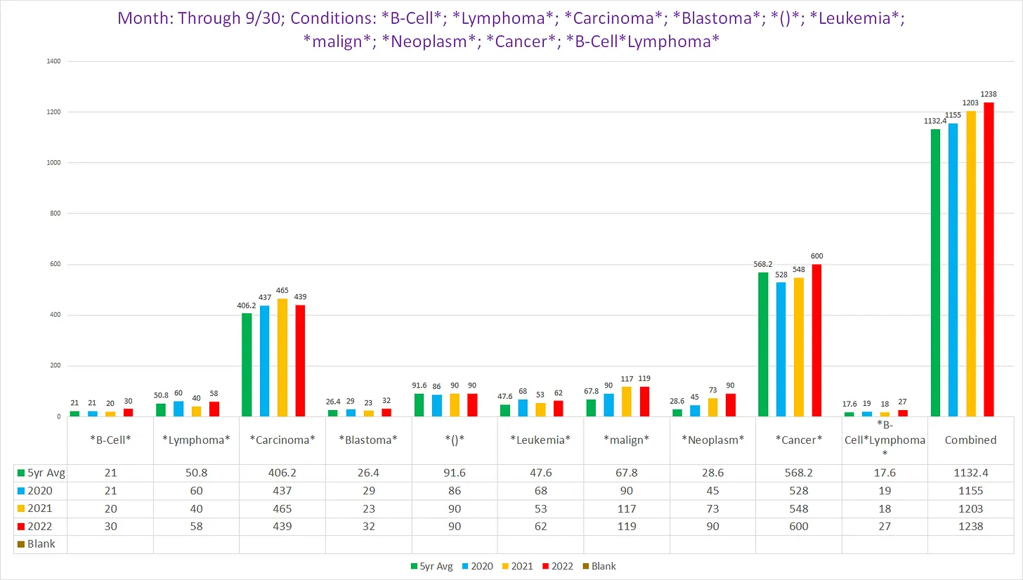 Therefore, the fact that 2021 – and even more for 2022 – saw excess cancer deaths following excess deaths in 2020 [& 2021] means that the degree of excess is probably more than what would appear to be the case superficially.
