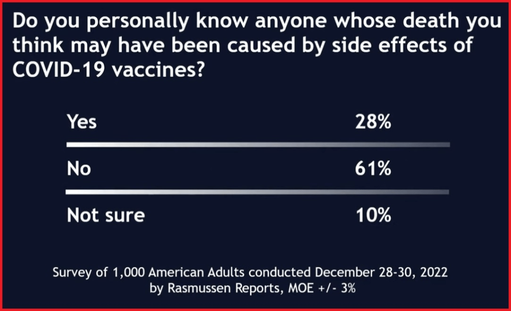 Nearly half of Americans think COVID-19 vaccines may be to blame for many unexplained deaths, and more than a quarter say someone they know could be among the victims.