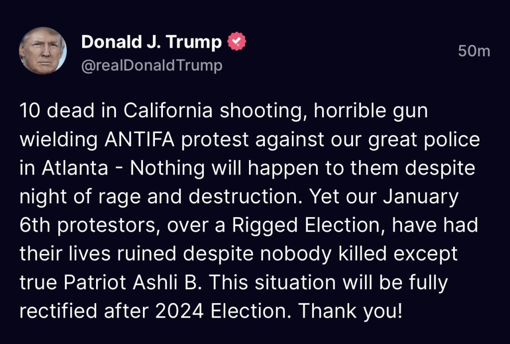 As I have said – the Democrats are sitting on the Constitution and the Bill of Rights and the open Border – and are not using law and order to run our great country.
