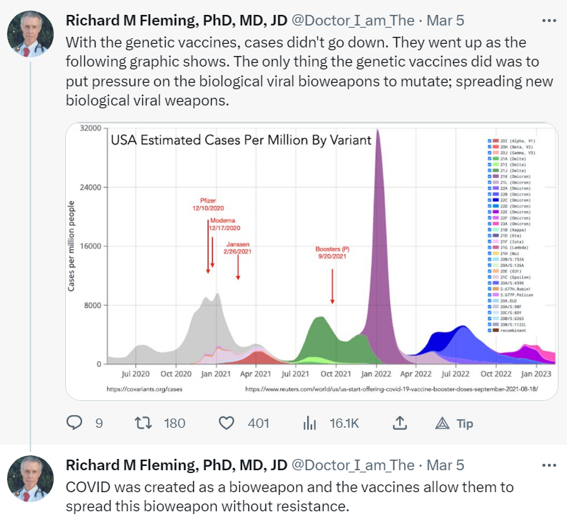‘COVID was created as a bioweapon and the vaccines allow them to spread this bioweapon without resistance’ ~ Dr Richard Fleming