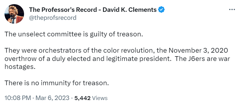 ‘The unselect committee is guilty of treason’ ~ David Clements