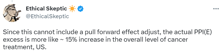 ~ 15% increase in the overall level of cancer treatment in USA since vax rollout