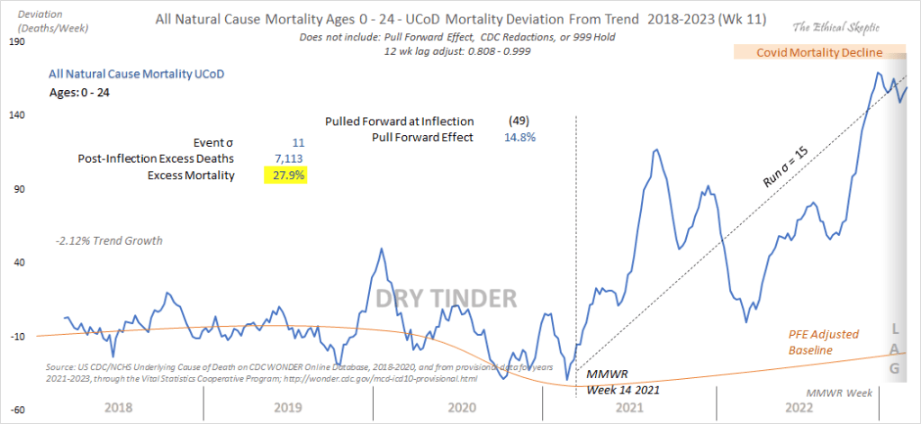 Ages 0-24 All Natural Cause Mortality soars May 4, 2023 ~ ABN Share this: Share on Reddit (Opens in new window) Reddit Share on X (Opens in new window) X Share on Facebook (Opens in new window) Facebook Share on LinkedIn (Opens in new window) LinkedIn Email a link to a friend (Opens in new window) Email Print (Opens in new window) Print Like Loading... Related Published by ABN View all posts by ABN