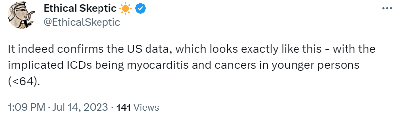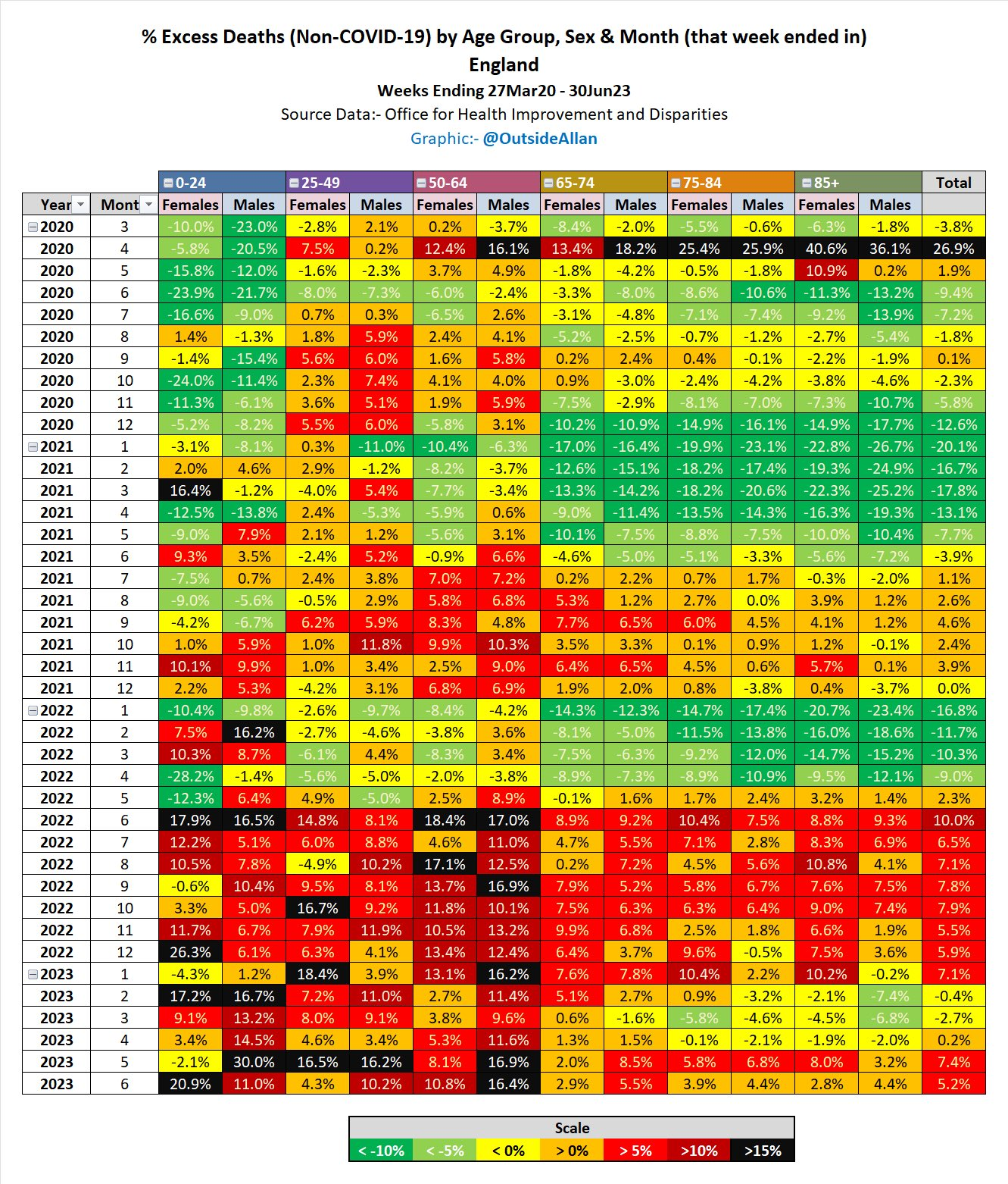 High cancer and myocarditis appear to be causes of high excess death rates in England & USA July 14, 2023 ~ ABN source for both images If this is not the covid vax, then what is it? ABN Share this: Share on Reddit (Opens in new window) Reddit Share on X (Opens in new window) X Share on Facebook (Opens in new window) Facebook Share on LinkedIn (Opens in new window) LinkedIn Email a link to a friend (Opens in new window) Email Print (Opens in new window) Print Share on Pocket (Opens in new window) Pocket Like Loading... Related Published by ABN View all posts by ABN