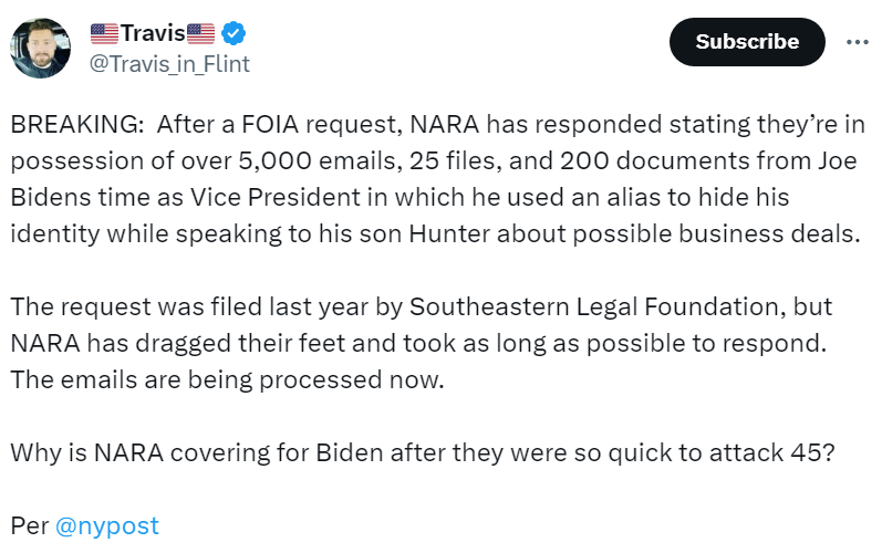 Proof of collusion between media and Biden’s controllers to hide WH corruption. We actually live in a country run in secret by a group of people no one can identify. And MSM never reports on that either. Biden is not president. He is an actor doing what he is told. It’s astonishing when you think about it—we actually have no idea who is in charge of USA. Meanwhile, whoever that is is leading us directly into a shooting war with Russia which has huge potential to go nuclear. Is Mayorkas the man behind the curtain? He is the one bringing alien military across the southern border in droves. Is Victoria Nuland top dog? She appears to have been leading the massacre of Ukrainian men and denuding of Ukrainian citizenry by driving them out of the country. Some say it’s Obama but I doubt it. It’s probably a small group. To me, it’s clear they hate USA and the West. That is clear as a bell. Most of us can see their actions and their baleful results but not knowing who they are almost makes their crimes invisible. An inference is required to see it. ABN