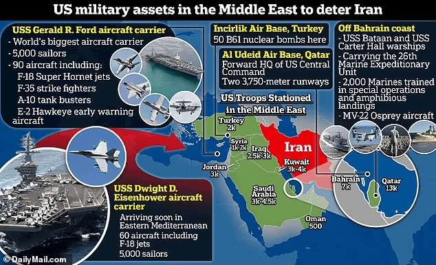 Many more aircraft, including F-15 and F-16 fighter jet squadrons, have been dispatched to US military bases in the region, doubling the number available in the Persian Gulf.