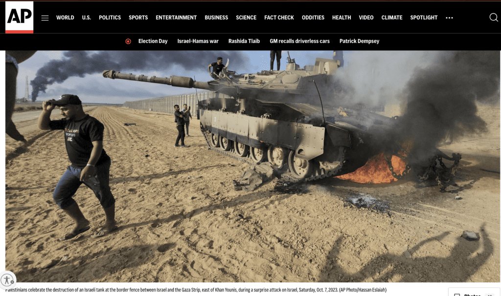This article has photos and more information, but spins the story solely into questioning why news organizations published work like this. This is a legitimate question but the presence of photo journalists and their work appearing that day in international publications also strongly suggests psyop-style preplanning. When coupled with the apparent preplanning of the border not being properly guarded while at the same time IDF troops had been removed far from it as the music festival had been moved closer to it… one has to wonder what top Israeli officials knew and when did they know it? For MSM and assorted politicians to not ask that question only further underscores the suspicion that the raid was MIHOP (Made It Happen On Purpose) intended to unleash the dogs of war on Gaza and the Middle East, as we are seeing today. ABN