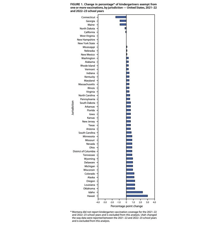 According to the CDC’s latest findings, 3% of children entering kindergarten during the 2022-2023 school year were granted vaccine exemptions by their states.