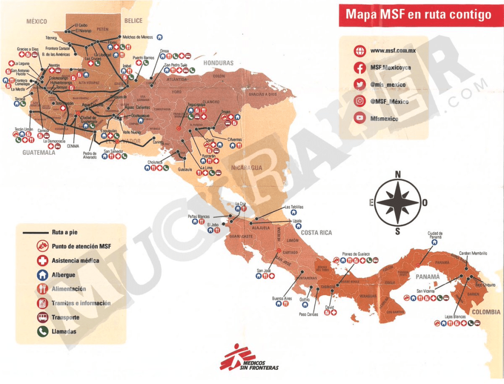 Muckraker has obtained multiple maps, handed out by non-government organizations across South and Central America, that detail the routes to take to the U.S. and where to cross the U.S. border.