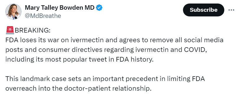 FDA loses overreach case into doctor-patient relationship March 22, 2024 ~ ABN Bowden says details coming today. I trust her enough to post this now. ABN Share this: Share on Reddit (Opens in new window) Reddit Share on X (Opens in new window) X Share on Facebook (Opens in new window) Facebook Share on LinkedIn (Opens in new window) LinkedIn Email a link to a friend (Opens in new window) Email Print (Opens in new window) Print Share on Pocket (Opens in new window) Pocket Like Loading... Related Published by ABN View all posts by ABN