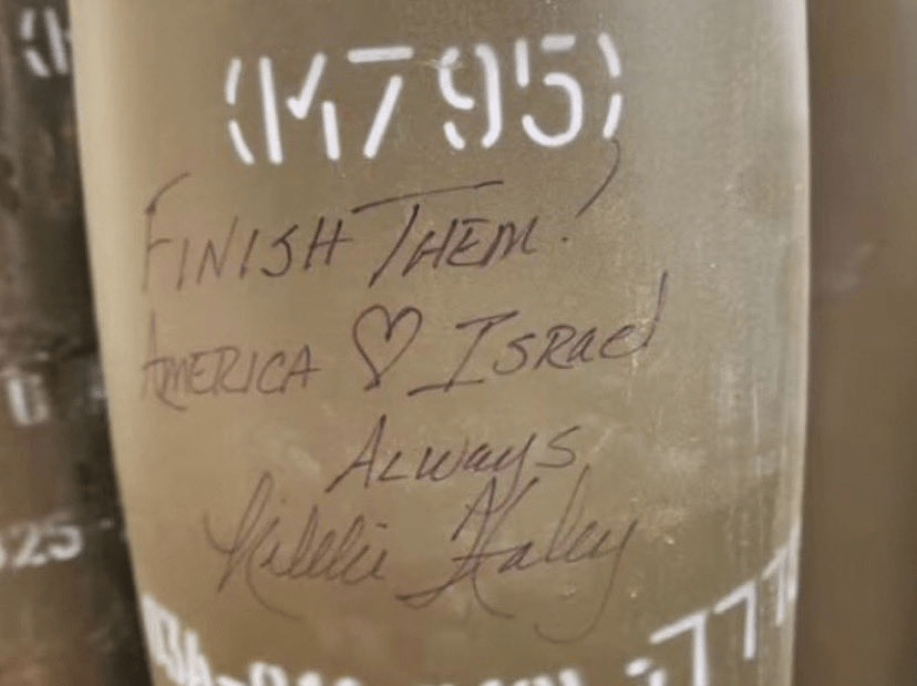 Nikki Haley in Israel commenting on artillery shells intended for Gaza