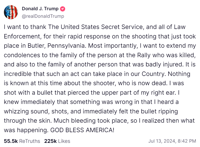 Thanks, Brutus! July 14, 2024 ~ ABN What else can he say? Musk should give Trump $1 billion to hire a completely new security detail. Head of SS must step down immediately. ABN Share this: Share on Reddit (Opens in new window) Reddit Share on X (Opens in new window) X Share on Facebook (Opens in new window) Facebook Share on LinkedIn (Opens in new window) LinkedIn Email a link to a friend (Opens in new window) Email Print (Opens in new window) Print Share on Pocket (Opens in new window) Pocket Like Loading... Related Published by ABN View all posts by ABN