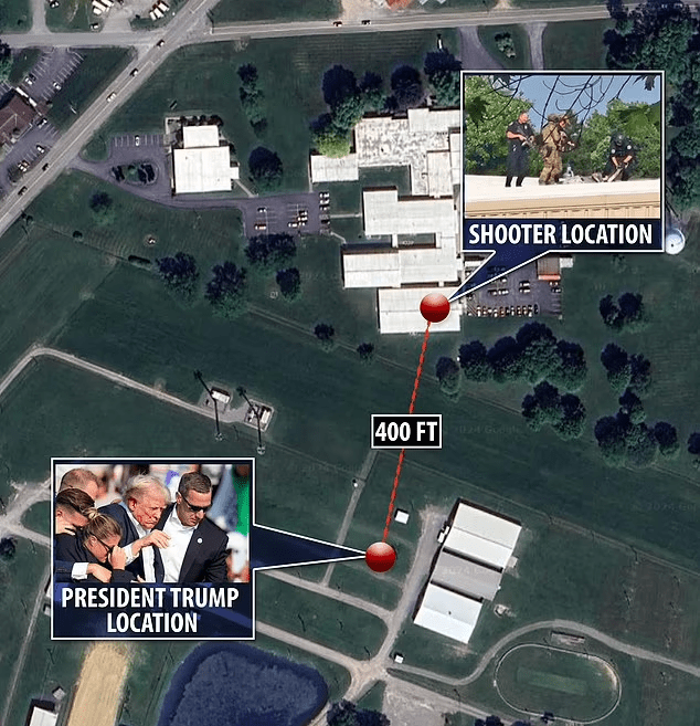 UPDATE: Notice where the Secret Service snipers were. It’s the rooftop of the large building behind the stage where Trump was standing. The SS snipers were even closer to the assassin than Trump, and from the video of them, appeared to wait while the assassin fired five shots before firing on him. ABN