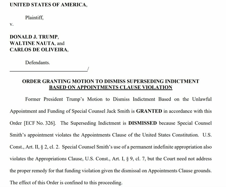 Judge Cannon dismisses Trump documents case, citing violation of appointments clause