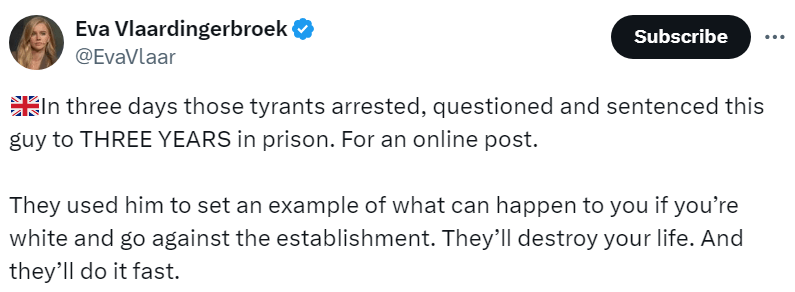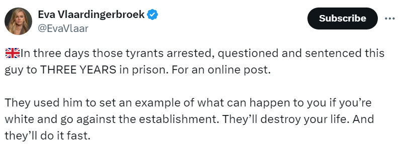 More proof the West has been conquered. Control of speech is mind-control. Severe punishment for speech is severe mind-control. Your conquerors are controlling your minds. In varying degrees, we can see severe speech control happening across the West. If this is not proof we have already been conquered, what more proof do you need? ABN